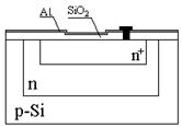 Конденсаторы метал-оксид кремния-полупроводник (МОП) – это конденсаторы, нижняя обкладка которых является сильно легированным n+-слоем (слой с низким удельным сопротивлением), а верхняя обкладка – это слой напыленного алюминия.