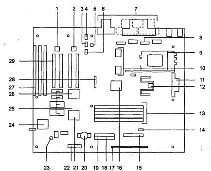 □ платы для микропроцессоров 80386 и 80486 — используются в соответствующих ПК прежних лет выпуска; следует иметь в виду, что системные платы, установленные в компьютерах с МП 80386, часто не пригодны для установки МП 80486, а в компьютерах с МП 80486 чаще всего несовместимы с МП Pentium (в случае модернизации (upgrade) при замене МП приходится менять и системные платы); некоторые из плат этой группы позволяют устанавливать дополнительно МП Over Drive, расширяющий характеристики основного микропроцессора до уровня характеристик МП Pentium. В этой группе определены многие важные параметры системных плат, характеризующие современные СП и поныне, в частности, стандартным стал тип микропроцессорного разъема с нулевым усилием сочленения (тип ZIF — Zero Insertion Force), что позволяет проводить замену МП в домашних условиях без применения специальных инструментов;