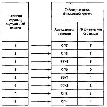 Технология организации виртуальной памяти следующая. Физические оперативная и дисковая (привлеченная к задаче) память и виртуальная память разбиваются на страницы одинакового размера по 4 Кбайт. Страницам виртуальной и физической памяти присваиваются номера, которые сохраняются одними и теми же на весь период решения задачи. Операционная система формирует две таблицы: