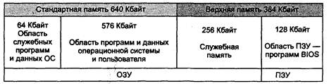 Для ПК характерно стандартное распределение непосредственно адресуемой памяти между ОЗУ и ПЗУ (рис. 6.3).