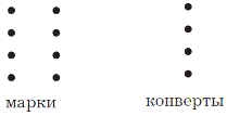 • У Пети было 8 марок. Он разложил их поровну в 4 конверта. Сколько было марок в каждом конверте?