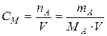 | Молярная концентрация | Количество молей растворенного вещества А, содержащихся в 1 л раствора |