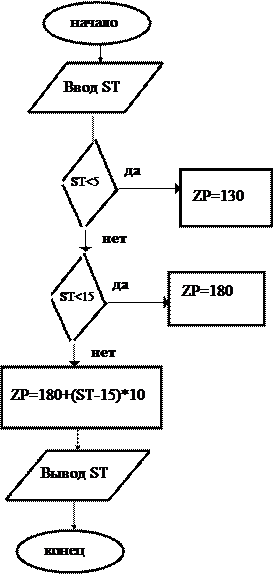 2. Если ST< 5, то ZP:=130, перейти в п.5,