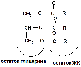 1.Триацилглицерины (твердые – жиры; жидкие - масла) имеют общую формулу: