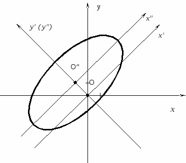 1) поворот координатных осей на такой угол, чтобы их направление совпало с направлением осей симметрии кривой (если она имеет две оси);