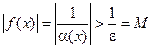Действительно, из определения бесконечно малой следует, что для каждого сколь угодно малого числа e > 0 можно указать зависящее от e положительное число d(e) > 0 такое, что для всех х, удовлетворяющих неравенству ½ x0 - х ½< d, имеет место неравенство ½ α(х) ½ < e. Тогда для f (x) = 1/α(х) выполняется соотношение
