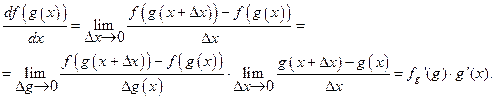 Аналогично найдем значения функции f (g (x + D x)) и f (g (x)). Тогда