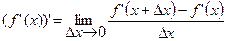 Если этот предел существует и конечен, то он называется второй производной от функции f(x) в точке х. Принятое обозначение: