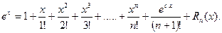 Решение. Построим формулу Тейлора для функции f (x) = ex в окрестности точки х0 = 0. Прежде всего, вычислим производные: