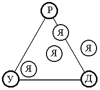 Если - вне треугольника, то - отдельно. Если - на линии, то есть противоречия между “Я” и коллективом.