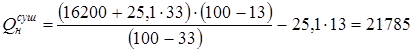 Расход сырого топлива при Wр =33% по (1.7) составляет