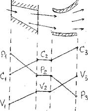 Конструкция лопаток реактивной турбины такова (рис.1.7 г), что пар расширяется не только в соме от V1 до V2, но и между лопатками рабочего колеса от V2 до V3. При этом изменяется давление пара от р2 до р3 и скорость пара от с2 до с3. Поскольку V2 < V3, то р2 > p3 и в соответствии с первым законом термодинамики элементарная работа расширения единицы пара