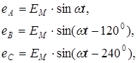 При равномерном вращении ротора и осевой симметрии обмоток статора мгновенные значения фазных ЭДС равны:
