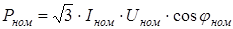 где Iном, Uном – действующие номинальные линейные значения силы тока и напряжения (соотношения между линейными и фазными электрическими величинами рассмотрены ниже);