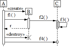 На рис. 5.20 показан пример, аналогичный предыдущему, в котором, однако, объект В создается и уничтожается во время взаимодействия.
