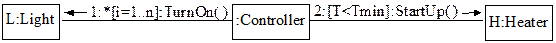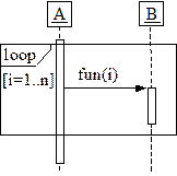 Циклы моделируются вставкой после номера сообщения итерационного выражения (рис. 5.24). Итерационное выражение изображается в виде звездочки, за которой следует перечисление в квадратных скобках. Перечисление может быть опущено, если надо обозначить цикл без дальнейшей детализации.