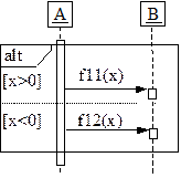 Ветвление также изображается в виде рамки, в которую вписано ключевое слово alt (рис. 5.22). Область оператора alt разделяется на части, каждая из которых имеет свое собственное условие. Если такое условие является истинным, то выполняются функции, предусмотренные в соответствующей части.