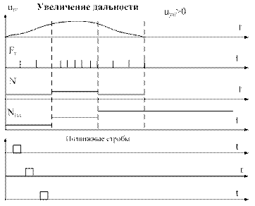 Формирование подвижных стробов дальности в ручном режиме (при увеличении дальности)