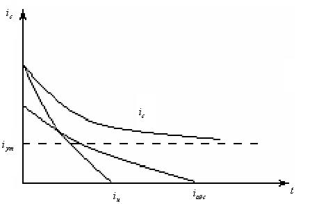 - ток нагрузки, обусловлен накоплением энергии (спадает по экспоненте)