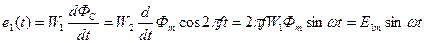 Значение ЭДС, индуцируемой в первой обмотке, определяется скоростью изменения магнитного потока: