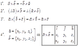 Свойства вытекают из свойств скалярного и векторного произведений. В частности,