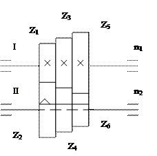 При перемещении подвижной шпонки 1 можно жестко соединять с валом II различные колеса.