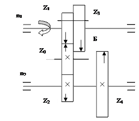 С подвижными блоками и промежуточным 2. С различными типами сменных муфт и промежуточным колесом. колесом.