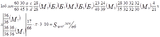 Для увеличения подач в 2, 4, 8, 16, 32 раза Б5 перемещаем вправо и вводим в зацепление колеса 45/45.