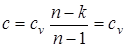 В уравнении линии процесса p×vn= const, (p1/n v= const) условие v= const удовлетворяется при n=¥, а теплоемкость изохорного процесса в соответствии с выражением равна