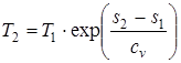 где T1, s1 – соответствуют началу процесса; с – теплоемкость рассматриваемого процесса.