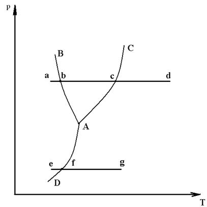 Для изучения фазовых превращений вещества, используется диаграмма р-T (рис. 2.2), в которой по оси абсцисс – отложена температура, а на оси ординат давление - р. При этом точка а – изображает исходное состояние вещества, взятое в твердой фазе.