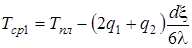 где с – удельная теплоемкость вещества, r – скрытая теплота плавления, Тпл – температура наружной поверхности плавящегося слоя, Тср1 – средняя температура плавящегося слоя определится по формуле: