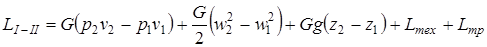 где Ui – внутренняя энергия текущей среды в соответствующем сечении канала; LI-II – работа, совершаемая потоком на данном участке, которая состоит из ряда составляющих: