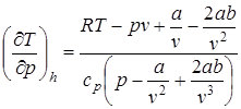 В отличие от идеального в реальном газе имеются силы притяжения между молекулами и при расширении его внутренняя потенциальная энергия возрастает. Это и является причиной возможного изменения температуры реального газа при дросселировании. Если при бесконечно малом изменении давления происходит бесконечно малое изменение температуры, то можно написать