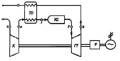 К – компрессор; ТО – теплообменник; КС – камера сгорания;