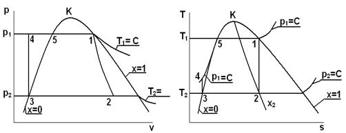 1-2 -адиабатное расширение пара в турбине (рабочий ход);
