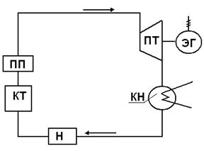 ПТ - паровая турбина; КН - конденсатор; Н - насос