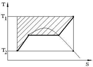 Увеличить заполнение верхней части диаграммы можно достигнуть применением парогазового цикла, использующего два рабочих тела: для высоких температур применяют продукты сгорания топлива, а для низких температур – вода, превращённая в пар. Соответственно используют газовую и паровую турбину.