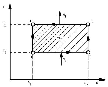Наиболее экономичным и совершенным с позиции термодинамики является обратный цикл С.Карно следующего вида, рис. 5.1.