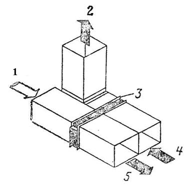 В связи с ростом стоимости энергии в настоящее время разрабатываются способы и дешевые конструкции устройств утилизации отработанной теплоты, которая сбрасывается в окружающую среду. На рис. 5.7 изображен регенератор воздух-воздух, состоящий из пучка оребренных ТТ, испарители размещены в канале 4, в который сбрасывается отработавший газ, 2, а конденсаторы расположены в канале 1, по которому движется холодный воздух. Подогретый в регенераторе 3 воздух передается потребителю.