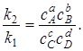 Если концентрация веществ при химическом равновесии обозначить сА, сВ, сС и сD, причем