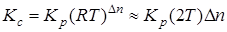 Выражение константы равновесия может быть представлено через парциальные давления (для идеальной газовой системы):