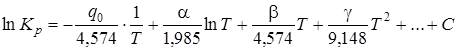 Зависимость констант равновесия от температуры может быть выражена следующим образом: