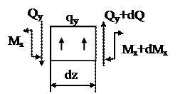 - Мх + qy×dz×dz/2 + Мх + dМх - Qy×dz = 0,
