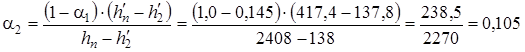 Величины отборов α1 и α2 вычисляем, используя формулы (4.31):