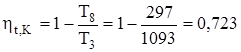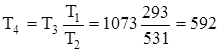 Решение. Прежде всего определяем «недостающие» температуры в точках 2 и 4 газового цикла: