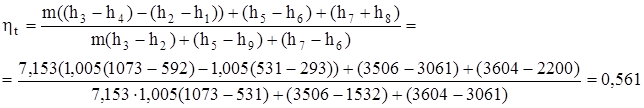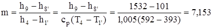 Здесь энтальпии h9 и h8’ кДж/кг, определены по таблицам [9] соответственно при р5 = 13 МПа и р8’ = 30 гПа.
