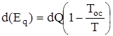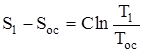 Получившийся источник теплоты является источником теплоты с переменной температурой, так как в процессе отвода теплоты от источника и превращения теплоты в работу он (источник) охлаждается. Его работоспособность будет исчерпана, когда его температура станет равной температуре окружающей среды. Процесс охлаждения источника теплоты показан на рисунке линией 1-0 до температуры Тос. Для бесконечно малого количества теплоты dQ при температуре Т дифференциал эксергии определяется через термический КПД цикла Карно, т.е.