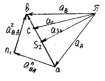 Ускорение центра масс (точка s) звена 2 определим, используя теорему подобия, тогда вектор πs будет изображать искомое ускорение центра масс звена 2.