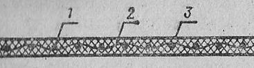 1. Крученый амидный кордшнур. 2. Слой резины. 3. Ткань